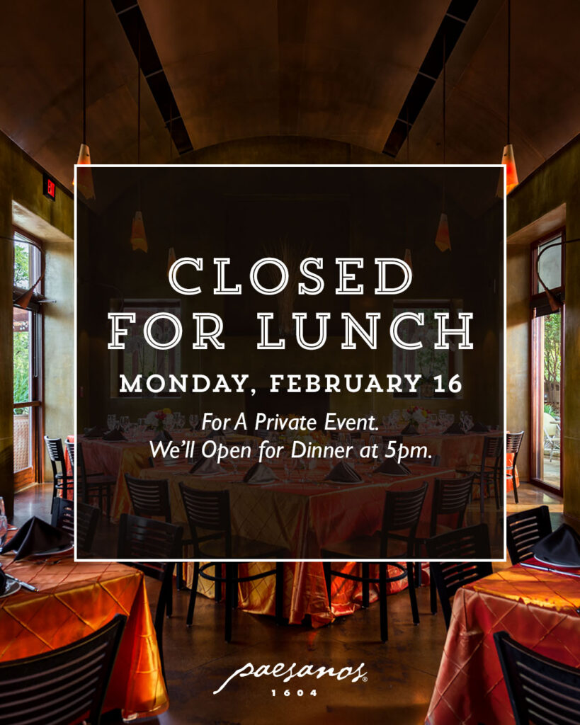 Paesanos 1604 is one of San Antonio’s most popular wedding and private event venues. Our goal is to make your next private dining event as special as the occasion it celebrates. When you’re ready to reserve your space — or if you’d simply like more information — please don’t hesitate to call or email us.